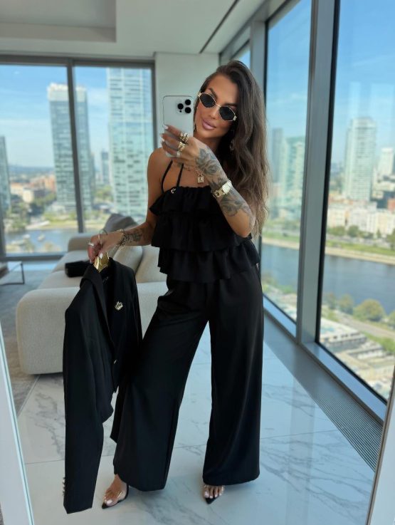 Pierwotna cena wynosiła: 269,99 zł.159,99 złAktualna cena wynosi: 159,99 zł.Bluzka z falbanami czekolada oraz ecru